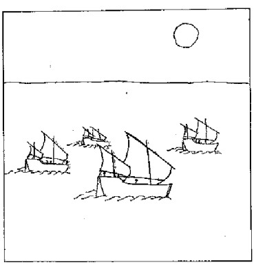 Dhows on sea (scene 2, centre)