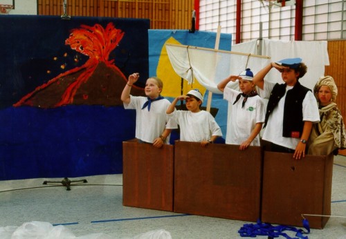 Excerpts: Below the beatiful Surface of the Sea There is a knock at the door. One of the servants appears in front of Ibn Majid. He bows to him and says. Servant: Ibn Majid, there are three young navigators standing outside the door. They ask if they may see you. Ibn Majid: I would be pleased to welcome them. Lead them to me! The servant leaves the stage and the three navigators appear. They are wearing turbans. They bow to Ibn Majid and say. All Navigators: Sallam aleikum, Ibn Majid. Ibn Majid: Sallam aleikum. I am very pleased that you have come to visit me. I know you. You are Hassan, you’re Mustafa and you are Ali (points at each of them). You are hard working, very good navigators. Hassan: The praise from your mouth means a lot to us. We thank you, Muallim. Ibn Majid: (claps his hands, and his servant appears) Bring coffee for the guests! (Now addressing the guests) Sit down and tell me what leads you to me. The servant brings a pot and cups and pours coffee for everybody. Mustafa: We bring you some notes from our most recent journeys. Everything is explained in here. All pass their notes to Ibn Majid. Ibn Majid: I thank you. I will check everything and record it. Ali: When the work is completed, the journeys on the Indian Sea will be even safer than they are already. Ibn Majid: Unfortunately, this is not necessarily conclusive. All Navigators: Why not? Ibn Majid: The years and the experiences of my journeys showed time and again that there are dangers which no sailing handbook in the world can give the right instructions to help to overcome. Ali: What kind of dangers are that, Muallim? Ibn Majid: They are dangers, which lurk deep under the beautiful surface of the sea. It is a place where no sunbeam is able to get to. .... Characters, scene