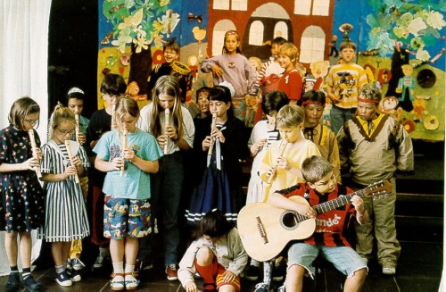 Excerpts: The First Day of School The stage set is divided into three parts. The left and the right parts show fields with flowers, trees and butterflies. On the central part one can se a school yard and many children. One child stands in the center of the stage. Child: Dear children of the first grade. We will now show you a play. It is called: The First day of School. The child leaves the stage. Peter and Mary come on stage, music plays. They carry their satchels and their first-day-cones in their arms. (Names naturally can be changed.) Mary: Good morning, Peter. Peter: Hello, Mary. Mary: It is a beautiful day today, isn’t it, Peter? Peter: Yes, you are right. Mary: I am really looking forward to it and I am so excited. Peter: And what are you looking forward to, Mary? Mary: To everything that we will soon be doing at school. Peter: We will learn reading, writing and arithmetic. Are you looking forward to it? Mary: Yes, because it is all very special. Because once that I can read, I will be able to read any story from anywhere in the world all by myself and I won’t need to wait until someone else reads it to me. And this is far from all that we will be learning. Peter: What else? Mary: For example singing, playing the flute, the glockenspiel and the guitar. Peter: I’ve already learnt how to sing in the Kindergarten, I won’t need to learn it anymore. Mary: Really? So can you sing with everyone else together in a choir as well? Peter: I don’t know exactly. Mary: And can you play an instrument yet, Peter? Peter: No. ....