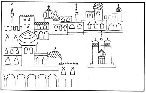 An arabic tune can be heard, Sinbad, his parents, two of his friends and two dancers come on stage . All sit down on the cushions, except of the dancers. The men are wearing huge turbans, the women wear veils. A placard shows: "Sindbad’s first Voyage" Scheherazade: Once upon a time, there lived a rich merchant by the name of Sinbad in Baghdad. You can see him here (points to him) in his house where he is giving a feast for his friends. Now the dancers do a short dance to the Arabic tune. Friend 1: Sindbad, this feast is marvellous. But how sad that it’s a good-bye feast we’re celebrating, since you’re going on a long and dangerous journey tomorrow. Sindbad: Yes, my dear friend, so it is. But Allah will protect me. Friend 2: Sindbad, you have all a man’s heart may desire: houses, precious clothing, exquisite fare, servants, slaves, and good friends, all here in Baghdad. Why do you want to leave for such a dangerous journey? Sindbad: You’re right, my dear friend, I’m not missing anything here. But I’m wondering if there is more in life than only pleasure. Mother: My son, each hour you’re away from us we will be worried about you. Father: Allah knows all and guides all, and He woke this desire in your heart. We mortals have to obey Him. Come back safe and sound, my son. Father, mother, the friends, and the